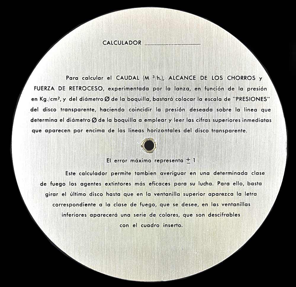 CALCULADOR DE CAUDALdimensions : 11,6 cm diamètre utilisation : POMPIERS