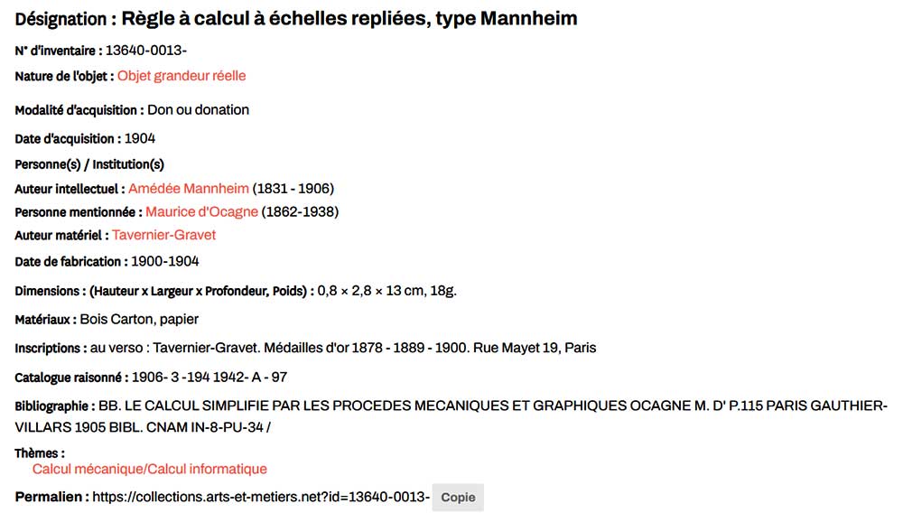 Exemplaire dans le catalogue du CNAM
