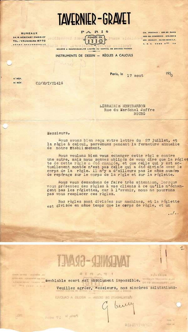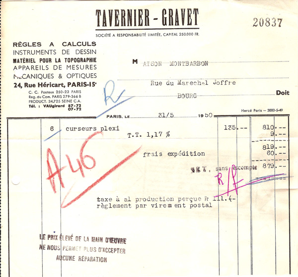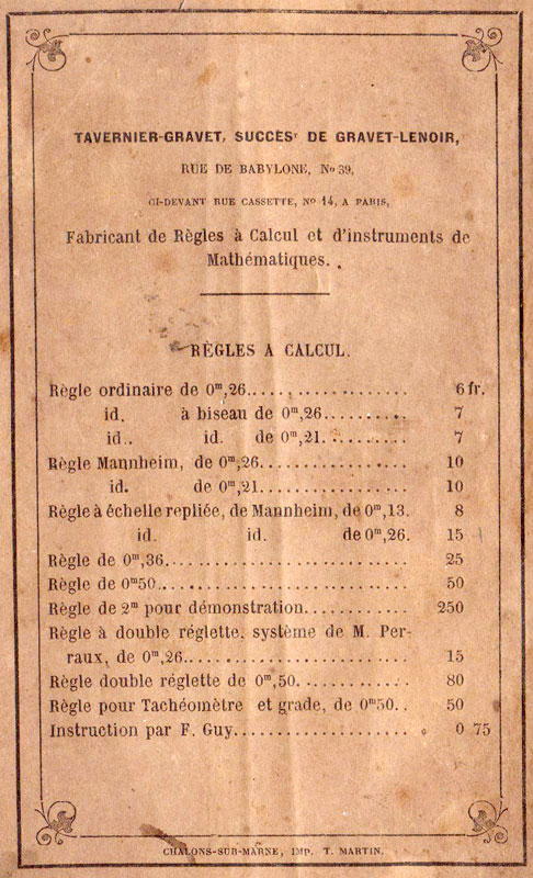 Notice 'Règle à calculs par Mannheim' (1851) (remerciements