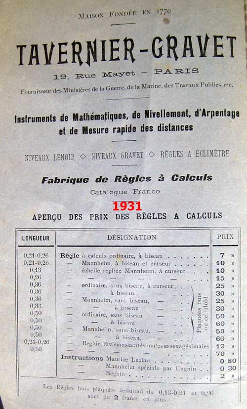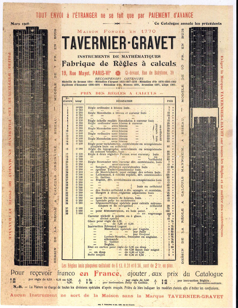 Ce catalogue proposait les règles Tavernier-Gravet