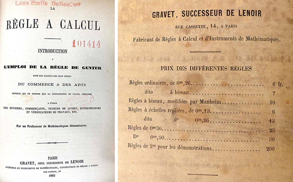 'La règle à calcul' par un Professeur de Mathématiques (1865)